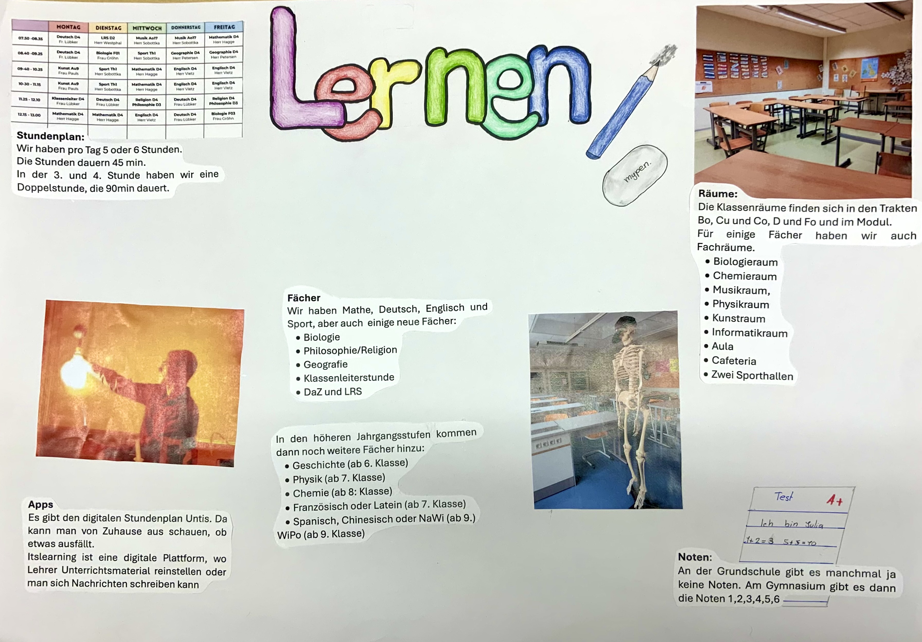 Nachdem im Deutschunterricht Plakate und Vorträge zu Themen wie z. B. "Lernen an der weiterführenden Schule", "Mensa" oder "Offene Ganztagsschule" erarbeitet worden waren, machten sich unsere 5. Klassen am Grundschultag mit den begleitenden Lehrkräften auf den Weg in die Grundschulen in Tönning, Oldenswort, Tetenbüll, Garding und St. Peter-Ording, um den dortigen Schülerinnen und Schülern der 4. Klassen einen kleinen Eindruck vom Schulalltag an der weiterführenden Schule zu vermitteln.