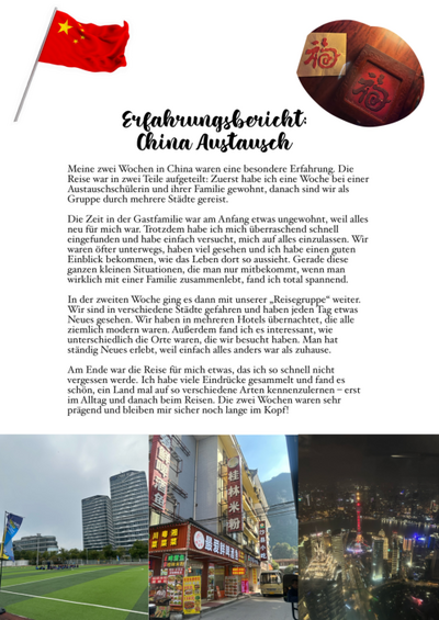 Der China-Austausch (Marlies Hamann, 10. Jahrgang)