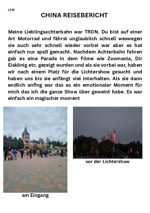 Besonders schön war die erste Woche bei unseren Austauschpartnern. Sie haben uns herumgeführt und integriert, und das hat sehr geholfen, sich nicht fremd zu fühlen. Auch die Chinesen und andere Touristen waren sehr höflich und nett. Viele von uns haben bis heute Kontakt zu ihren Austauschschülern und wollten am Ende gar nicht abreisen. Und auch wenn nicht jeder die perfekte Beziehung hatte, wurde niemand ausgeschlossen.