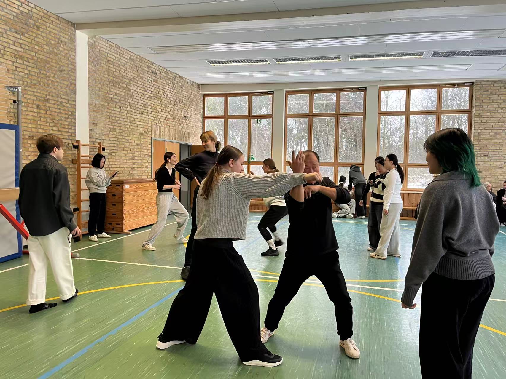Für den Gegenbesuch hatten wir ein abwechslungsreiches und besonderes Programm vorbereitet. Ein Highlight war der Kungfu-Workshop mit einem Kungfu-Meister aus Magdeburg, an dem rund 30 Schülerinnen und Schüler teilnahmen. In diesem außergewöhnlichen Projekt lernten die Teilnehmenden Elemente des Drachentanzes, Techniken der Selbstverteidigung sowie grundlegende Kungfu-Bewegungen kennen. Der Workshop war nicht nur sportlich anspruchsvoll, sondern auch ein beeindruckendes Beispiel für kulturellen Austausch in beide Richtungen.
