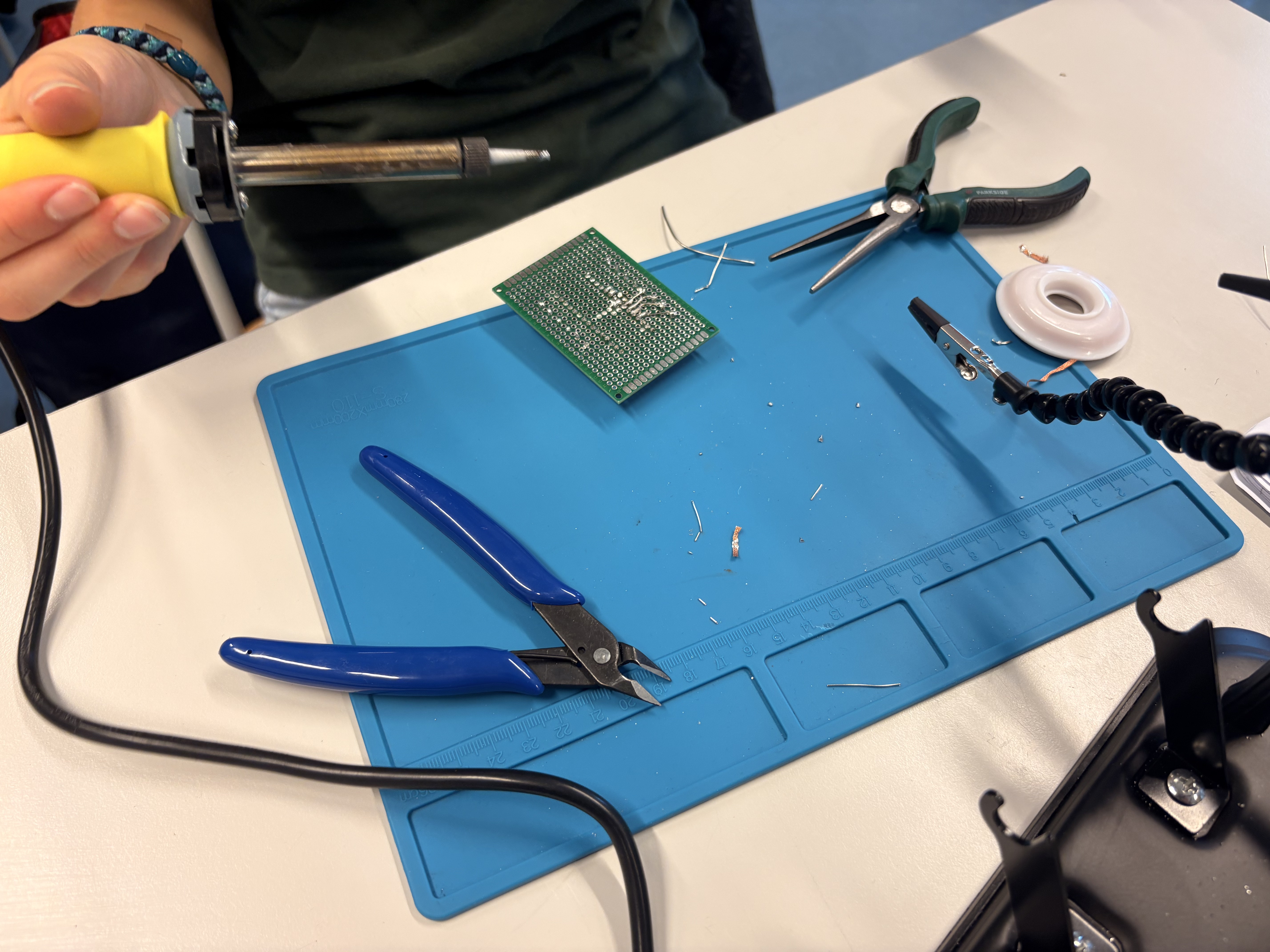 Wie programmiert man sinnvoll mithilfe von KI? Um bei dieser Frage zu unterstützen und um das Projekt des MINT-Kurses des 10. Jahrgangs der Nordseeschule kennenzulernen, besuchte Herr Appel (Professor für technische Informatik und Mikroelektronik an der FH Westküste) am vergangenen Dienstag den MINT-Unterricht und beriet die Schülergruppen bei ihrer Arbeit. Der MINT-Kurs des 10. Jahrgangs arbeitet das ganze Schuljahr daran, eine Serie von 30 Kopfrechentrainern für den Mathematik-Unterricht der Orientierungsstufe zu entwerfen und zu bauen. Dafür entwickeln die Schülerinnen und Schüler des Kurses eine Software, stellen Platinen her und konstruieren ein Gehäuse für den 3D Druck. Das Projekt wird unter anderem von der Initiative LüttIng gefördert (hinter der die NORDMETALL-Stiftung, das Ministerium für Allgemeine und berufliche Bildung, Wissenschaft, Forschung und Kultur S-H und die Prof. Dr. Werner-Petersen-Stiftung steht).