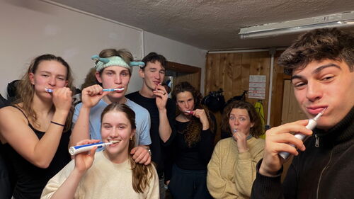 Die Motivation innerhalb unserer gesamten Gruppe war entsprechend hoch. Erkennbar war das daran, dass die meisten freiwillig besonders früh aufstanden, um schon vor dem Frühstück die ersten Abfahrten zu genießen, und vor allem die Anfängerinnen und Anfänger eine bemerkenswerte Lernkurve zeigten. Einige von ihnen konnten bereits am dritten Skitag in der Gruppe der Intermediären mitfahren. Die drei Begleiterinnen unterstützten uns in allen Leistungsstufen intensiv. Die Fortgeschrittenen und Experten wurden mit anspruchsvolleren Techniken wie dem „Carving“ vertraut gemacht und konnten hier an ihrer Technik feilen. Für Abwechslung sorgten wir durch das Ausprobieren von Tricks und den Wettbewerb um möglichst viele Pistenkilometer, während unsere Begleiterinnen uns mit einem gemeinsamen Ausflug in das benachbarte Skigebiet Hochfügen bei Laune hielten. Auch abseits der Piste kam unser Gemeinschaftsgefühl nicht zu kurz. Da die Tage sportlich sehr intensiv waren, verliefen unsere Abende bewusst ruhiger. Besonders beliebt waren unsere täglichen und stundenlangen „Werwolf“-Runden, bei denen mit viel Engagement diskutiert, getäuscht und beschuldigt wurde.