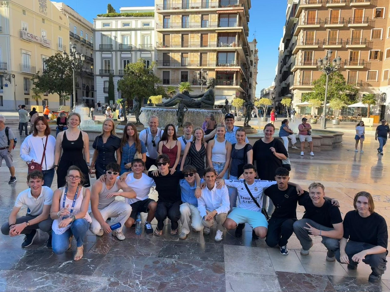 Am 23. September flogen die insgesamt 22 Schülerinnen und Schüler der Profile Spanisch, Chemie und Sport in Begleitung von Frau Affrad und Herrn Bodewaldt in den frühen Morgenstunden von Hamburg nach Valencia. Trotz des frühen Fluges waren alle voller Vorfreude und kamen bestens gelaunt im Quart Youth Hostel bereits am Mittag an. Da wir unsere Zimmer jedoch erst ab 15 Uhr beziehen konnten, erkundeten wir schon einmal die Umgebung auf eigene Faust, bevor uns Fabiola ab 16 Uhr bei der offiziellen Stadtführung die wichtigsten Sehenswürdigkeiten und die Geschichte Valencias näherbrachte.